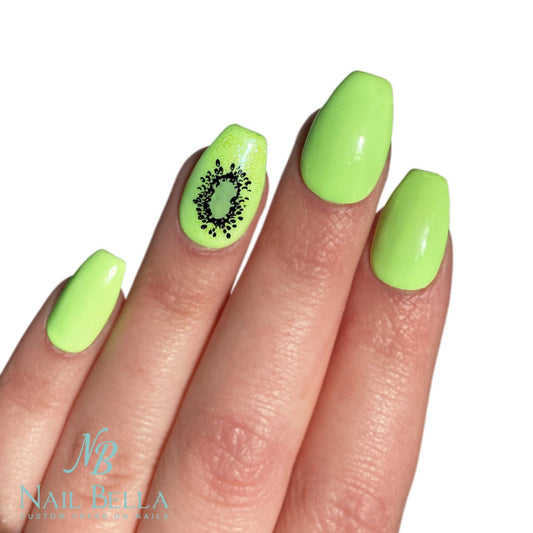 Green Swirl Mid Coffin Press On Nails / Nails with Designs / Fake Nails / Glue On Nails / Nail on Press Nail Short / Press on Nail Short