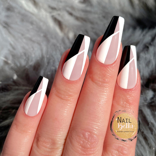 Coffin Nails | Black and White Nails Coffin | Coffin Nails with Design | Fake Nails | Press On Nails | Stick On Nails | Glue On Nails