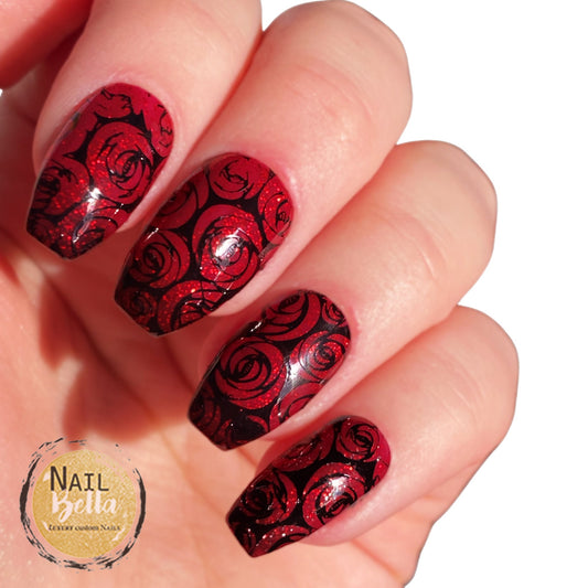 Custom Handmade Press-On Nails – Black with Red Roses | Unique, Durable & Trendy Nail Art
