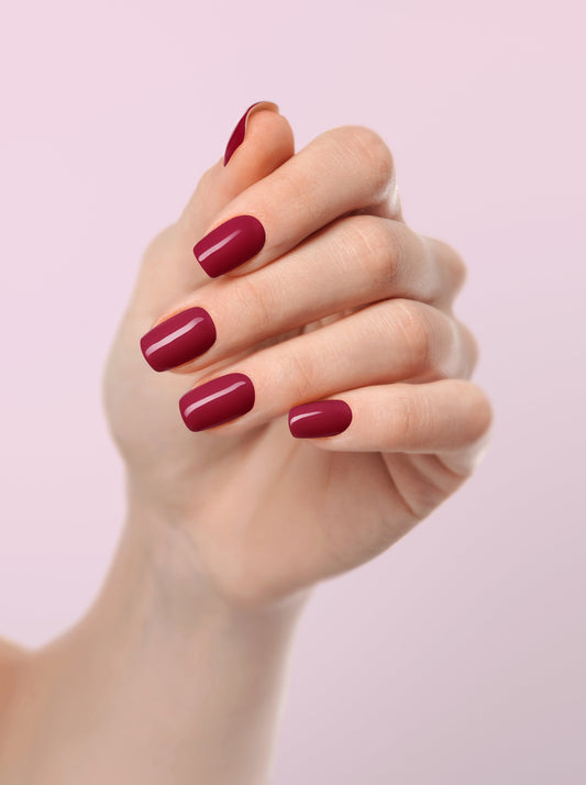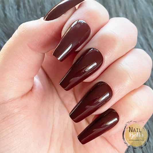 Dark Maroon Custom Handmade Press-On Nails | Complete Kit for Easy Application & Long-Lasting Wear