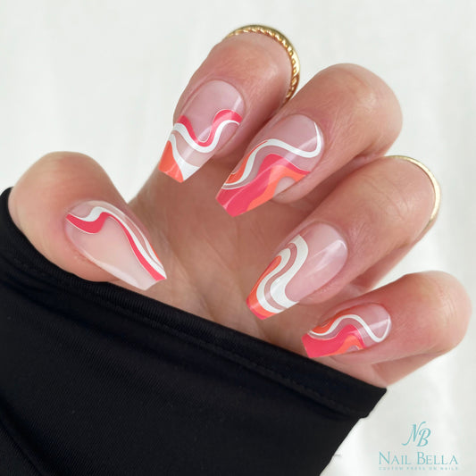 Pink Swirl Mid Coffin Press On Nails / 28 Nails with Designs / Fake Nails / Glue On Nails / Nail on Press Nail Short / Press on Nails Short