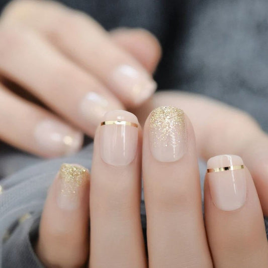 Press on Nails Short | Gold Glitter Nude Press on Nail Short / Fake Nails / False Nails / Glue On Nails / Ombre Nails / Short Press on Nails